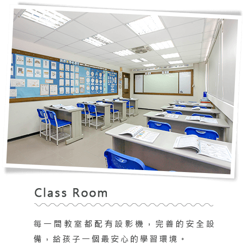 我們提供安全、寬敞的學習空間,每一間教室都配有攝影機,完善的安全設備,給孩子一個最安心的學習環境。