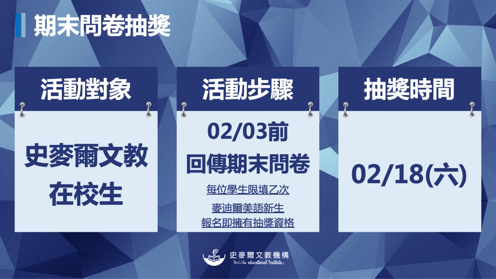 記得隨時留意期末問卷上線通知嘿!