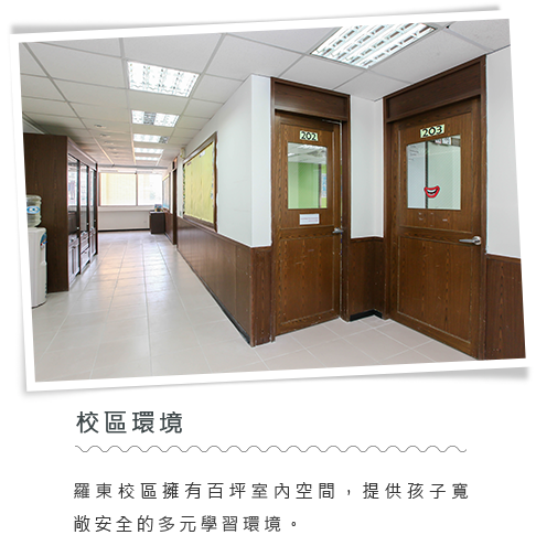 我們提供安全、寬敞的學習空間,每一間教室都配有攝影機,完善的安全設備,給孩子一個最安心的學習環境。