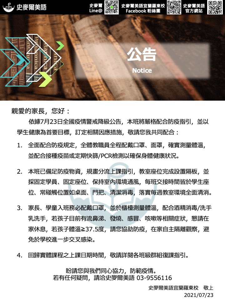復課後的課程細節我們也將儘快公告至各班級群組給大家唷!